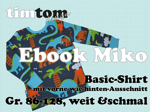 Die liebe Jane alias Frau mit Frosch, alias timtom design hat gleich zwei neue Ebooks erstellt, die ich probenähen durfte. Bei Miko handelt es sich um ein vorne-wie-hinten Shirt mit normalen Ärmeln (so wie Onno mit Raglan-Ärmeln). Das Shirt gibt es in einer schmalen/normalen Variante und in einer weiten Variante. Mein Mäusezähnchen zieht sich alleine an, aber vertauscht eigentlich immer vorne und hinten. Das ist bei Miko nun kein Problem mehr :-).